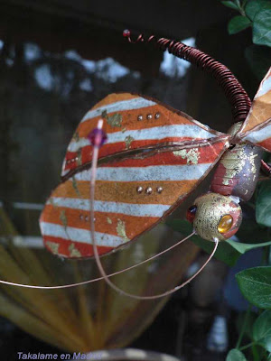 Libélula hecha con papel (de la tienda francesa "l'éclat de verre"), con gel de fimo por las alas, arcilla polimerica normal por el cuerpo y pan de oro.